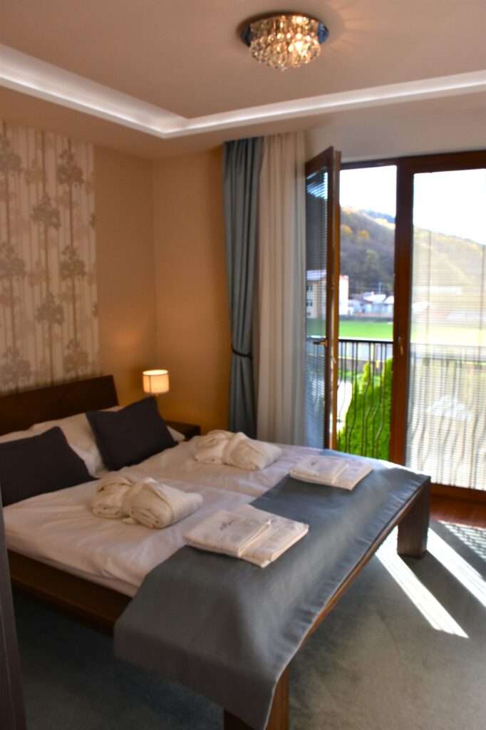 Umiestnenie hotela Daro v Hodruši Hámre je prekvapivo medzi obytnými domami. Exteriér i interiér hotela však vyzerá veľmi dobre. Už v úvode nás milo prekvapilo správanie personálu, ktoré bolo na profesionálnej úrovni. Personál sa vždy zaujímal o naše pohodlie a bol nápmocný klientom. K dispozícii sme mali izbu De luxe, ale v podstate izbami typu Štandard hotel ani nedisponuje. Je možné si objednať izbu Family alebo apartmán. Izba mala moderný dizajn i zariadenie. Na posteli nás čakali župany a papuče do wellness centra. Osušky a uteráky boli samozrejmosťou. Oproti posteli bol umiestnený plazmový televízor. Izba nebola veľká, ale postačujúca. Kúpeľňa bola prepojená s toaletou a nachádzal sa v nej sprchovací kút. K dispozícii bol fén, tekuté mydlo a dve malé fľaštičky so šampónom. Skriňa na šaty sa nachádzala v malej predsieni.