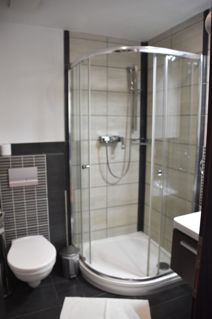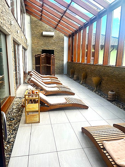 Wellness centrum bolo malé. Bola v ňom vírivka a dve sauny – parná a fínska. Okrem sprchy bolo pripravené aj vedro s ľadovou vodou. Tepidárium s ležadlami bolo veľké a priestranné. K dispozícii bola aj citrónová voda. Pobyt vo wellness centre bol ohraničený časom 1,5 hodiny na deň. Personal korigoval množstvo ľudí vo wellnesse časovaním. V prvý deň sme si vybrali čas o 16,00 hod., ale kým sa vírivka nahriala na nastavenú teplotu prešlo skoro 50 minút. Preto sme si na druhý deň vybrali čas 18,30 hod. a vtedy už bolo vo vírivke krásne teplúčko 🙂 .Hotel nedisponuje bazénom. Ak by som hľadala hotel kvôli wellnessu, určite by som uprednostnila hotel s väčším wellness centrom a bazénom, ale keďže podstata nášho výletu bola v návšteve Banskej Štiavnice, večerný 90-minútový wellness bol milým bonusom.