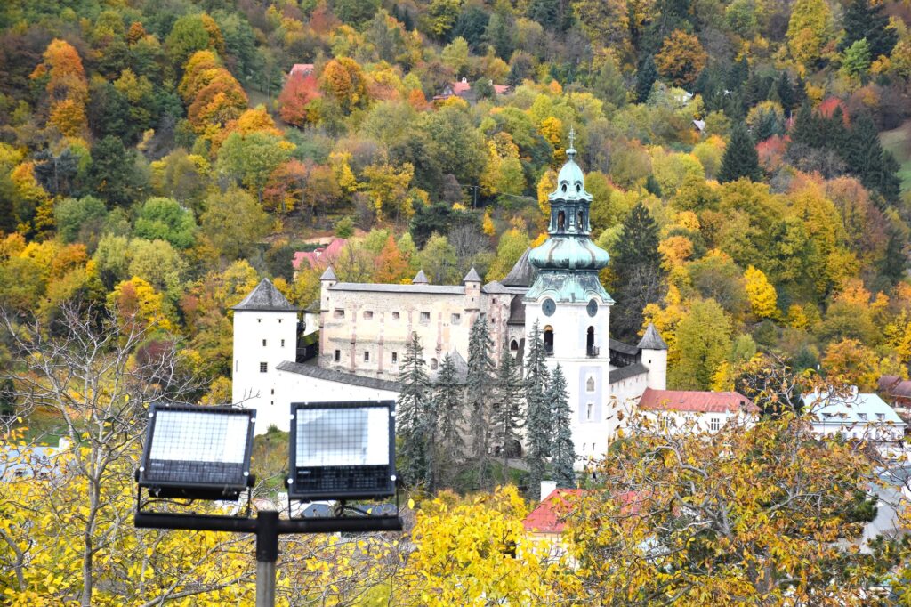 Banská Štiavnica sa nachádza 14 km od Hodruši Hámre, kde sme boli ubytovaní. Banská Štiavnica je historické kráľovské banské mesto, ktoré bolo v roku 1993 spolu s jeho technickými pamiatkami zapísané do svetového kultúrneho a prírodného dedičstva UNESCO. Banská Štiavnica je nádherné romantické mestečko a jesenné lístie, ktoré hralo všetkými farbami jej dávalo ešte väčšie čaro. Parkovanie v Štiavnici je dlhodobým problémom. Je nedostatok parkovacích miest a tie existujúce sú pomerne drahé. My sme platili 2 € za každú začatú hodinu. Keď sa počas svojich potuliek po Banskej Štiavnici unavíte a vyhladnete, zastavte sa v Pizzérii Barborka. Vo vnútrobloku tejto Pizzérie sa nachádza Štôlňa Svätá Barborka. Štôlňa síce nie je veľká, ale pre rodinku s deťmi to môže byť dobrodružný zážitok 🙂 . Kto sa rozhodne pre turistiku, môže zrelaxovať v prírode regiónu Štiavnických vrchov.