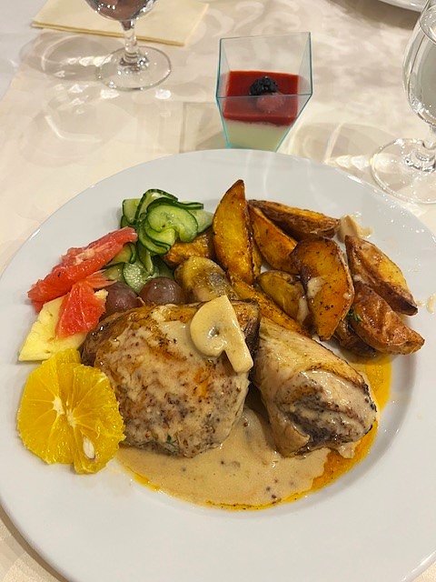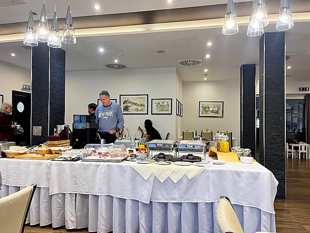 Súčasťou pobytu bola polpenzia formou bufetových stolov. Je potrebné pochváliť kuchárov, nakoľko jedlo na raňajky i večeru bolo veľmi chutné. Raňajky boli dostačujúce. Výber raňajkových jedál bol veľký a každý si na bohatom bufetovom stole mohol nájsť to svoje. Kritiku však musím vzniesť na kávu. Káva z raňajkového kávovaru bola vodnatá a skrátka nechutila dobre. Naopak v kaviarni ste si mohli kúpiť skvelú kávu. Škoda, že sa takáto neponúka na raňajky. Večere boli tiež dostačujúce, jedlá boli ohrievané ohňom v nerezových misiach. K dispozícii bolo aj ovocie a dezerty, či už panna cotta alebo koláčiky. Chýbala mi však zelenina. Bolo tam trošku šalátu, ale celkove bolo zeleniny veľmi málo. Mäso však bolo pripravené na výbornú. Bola som milo prekvapená, že súčasťou večere boli džbány s vodou a ovocím alebo mätou.