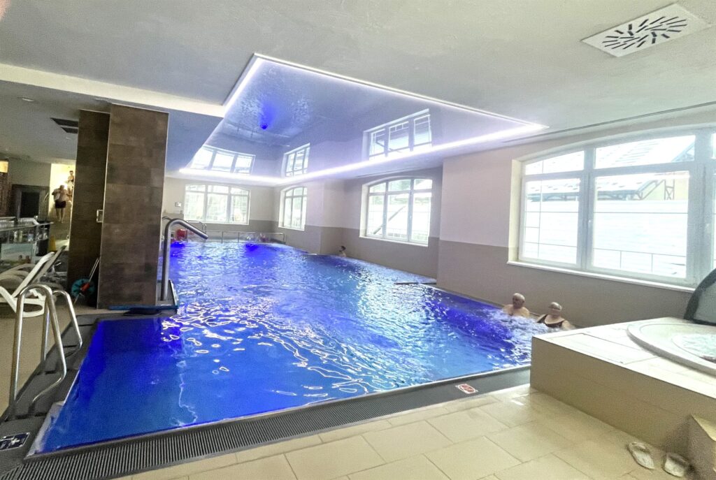 Wellness sme si zakúpili cez Zľavomat v Kúpeľoch Smerdžonka Červený Kláštor, za sumu 25 € na osobu. V popise síce bol celodenný neobmedzený vstup, ale bolo to trochu metúce, pretože od rána fungoval len bazén a sauny sa otvárali až o druhej popoludní. Kúpele sú zamerané na liečbu kožných a dýchacích ťažkostí. Vzdialenosť kúpeľov od kláštora bola niečo cez kilometer. Novovybudované wellness centrum bolo naozaj pekné. Nájdete tam relaxačný bazén s masážnymi tryskami a protiprúdom. Hoci to nebol typický plavecký bazén, ale vzhľadom k tomu, že tam bolo málo ľudí, skvelo som si zaplávala. K dispozícii bola jedna vírivka. Bazénová časť disponovala barom, kde ste si okrem nealko nápojov mohli zakúpiť trebárs aj prosecco. Saunová časť wellnessu ma zaujala ešte viac ako bazénová. Nájdete tam fínsku, infra a parné sauny, vrátane soľnej inhalácie, Kneippov chodník, dve vírivky a tepidárium. Mimochodom vírivky boli stále prázdne, nakoľko vstup saunovej časti bol bezplavkový a my slováci sme ešte stále trošku prudérny národ 🙂 . Ale vždy sme na tom lepšie ako Maďari, ktorí chodia v plavkách aj do sáun a takto degradujú saunovú kultúru.
